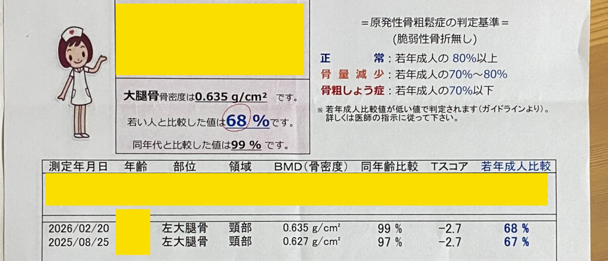 大腿骨の骨密度が低いようでした。