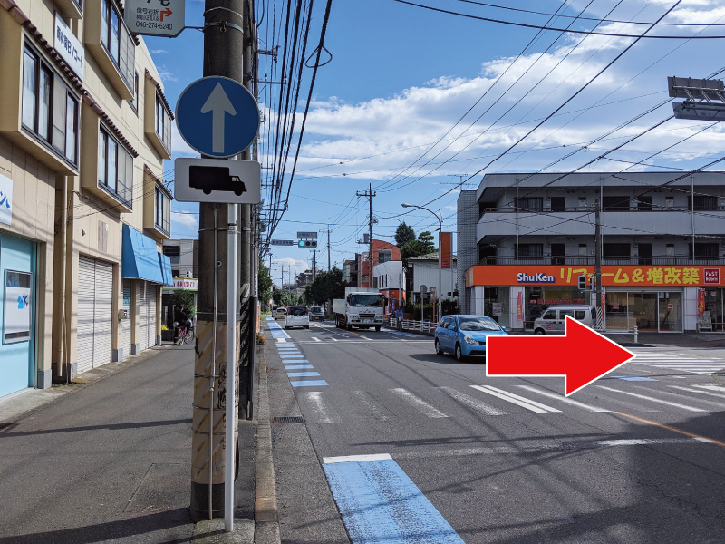県立座間谷戸山公園から南林間駅西口に向かう道を進んでいただき、つきあたり(南林間駅西口が目の前に見える)を左折してください。
