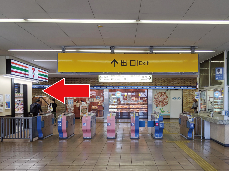 改札を出て左にお進みください。
