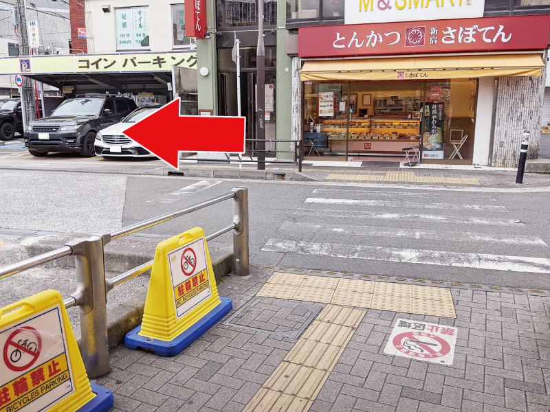 とんかつ屋さんの前まで来ましたら左折します。