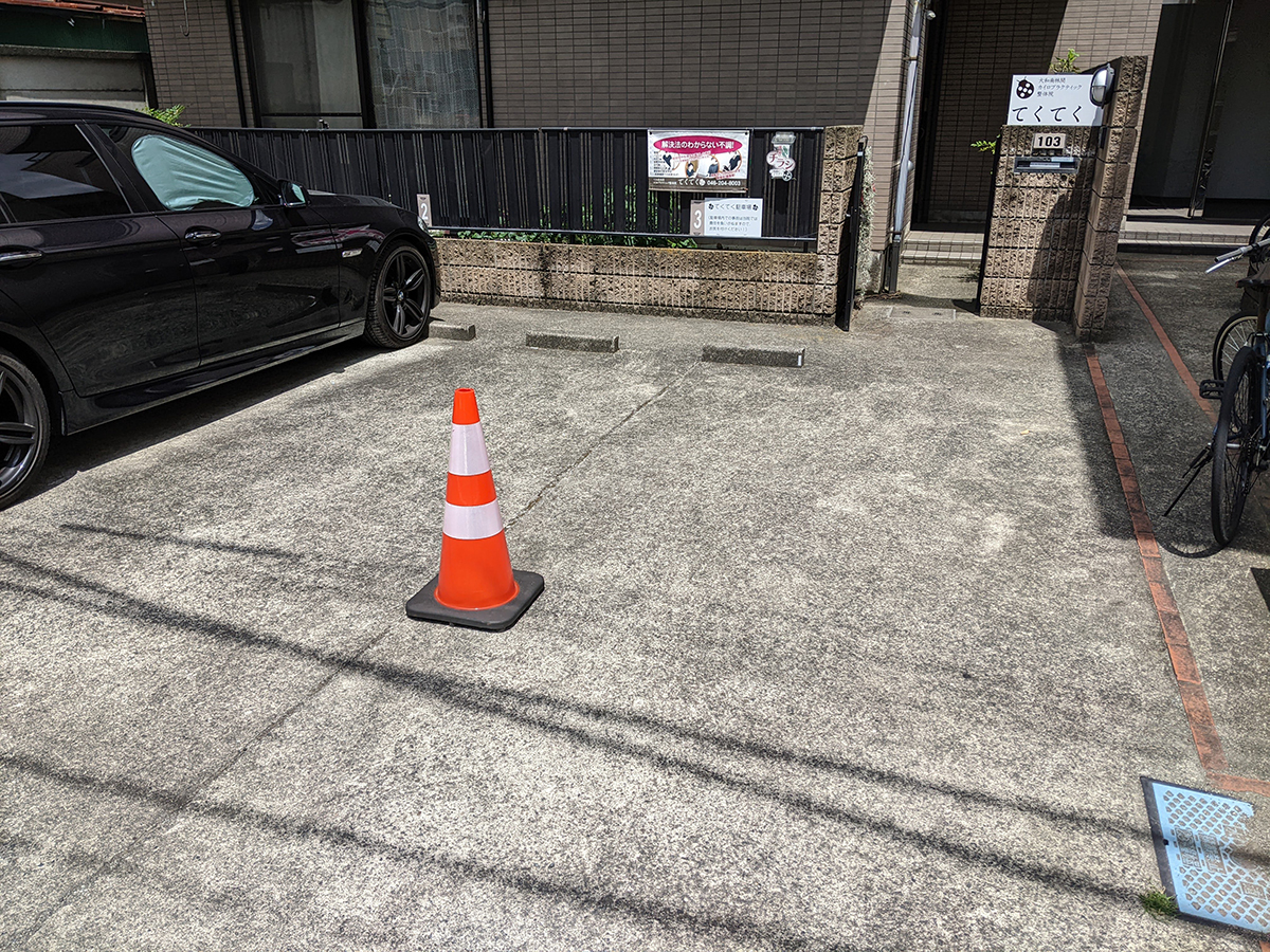 当院の専用駐車場に勝手に車を停めてしまう方がいるため 駐車スペースにカラーコーン...