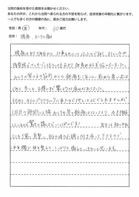 皆さまも、もし施術院選びで迷った際には、最低でも検査をしっかりと行なう施術院を選ばれるといいと思います。