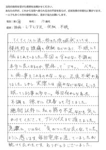 きつい不眠と便秘、それに頭痛に悩まされておりました。