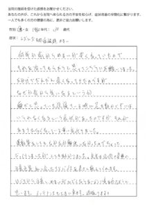 数回の施術の後に下肢の症状について教えていただきました。